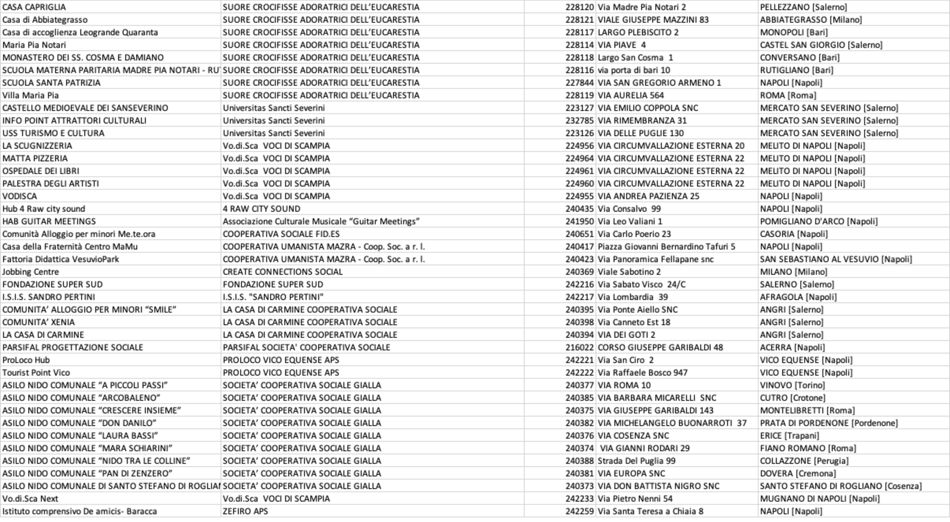 - 64.479 operatori volontari in 2.635 progetti, collegati a 548 programmi di intervento, da realizzarsi in Italia;